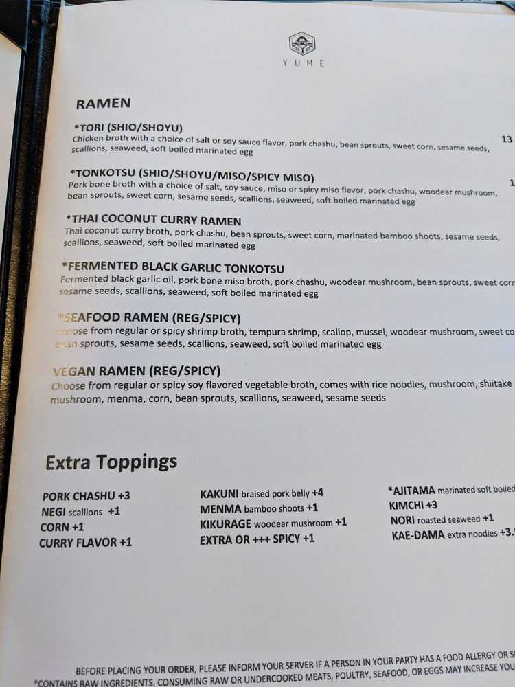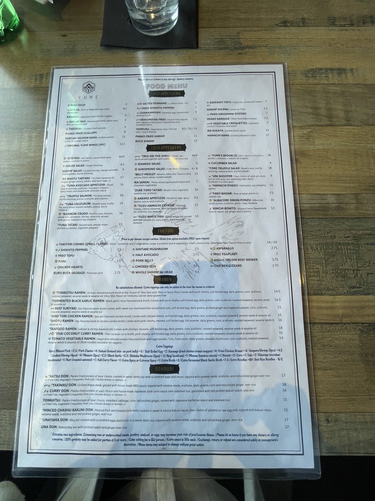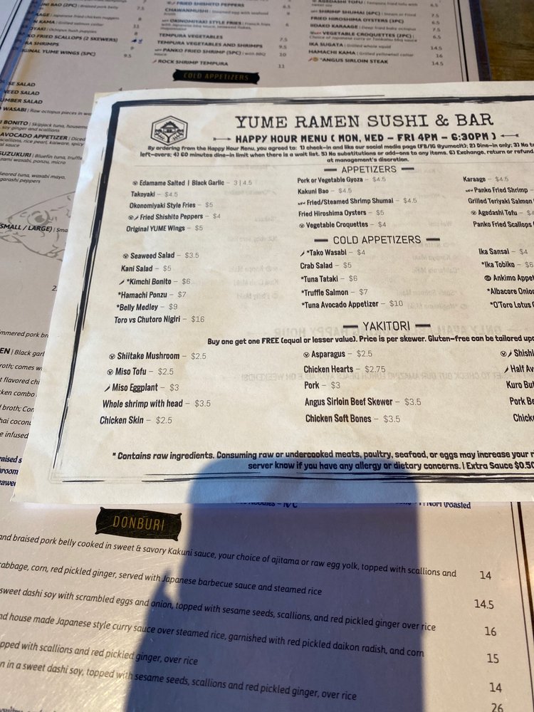 Yume Ramen Sushi & Bar offers a unique dining experience in Charlotte, NC, with a diverse menu catering to both ramen and sushi lovers. This trendy and intimate restaurant provides a range of options, including soy-free and vegan choices, making it accessible to all. The Hot Appetizers feature savory delights like Pork Gyoza and Karaage, while the Cold Appetizers offer refreshing options like A5 Wagyu Tartare and Shrimp Salad. The Yakitori selection includes mouthwatering skewers like Angus Sirloin Beef and Pork Belly. With happy hour specials, a full bar, and even options for catering, Yume Ramen Sushi & Bar is a versatile dining destination suitable for any occasion. Don't miss out on the opportunity to try their delicious dishes in a classy yet casual setting.